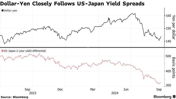 周四(9月19日)亚市盘中,日元兑美元的跌幅一度达到1.17% ,隔夜美联储降息以及美联储主席鲍威尔发表讲话后 ,交易员权衡日本和美国之间收益率差异的前景 。